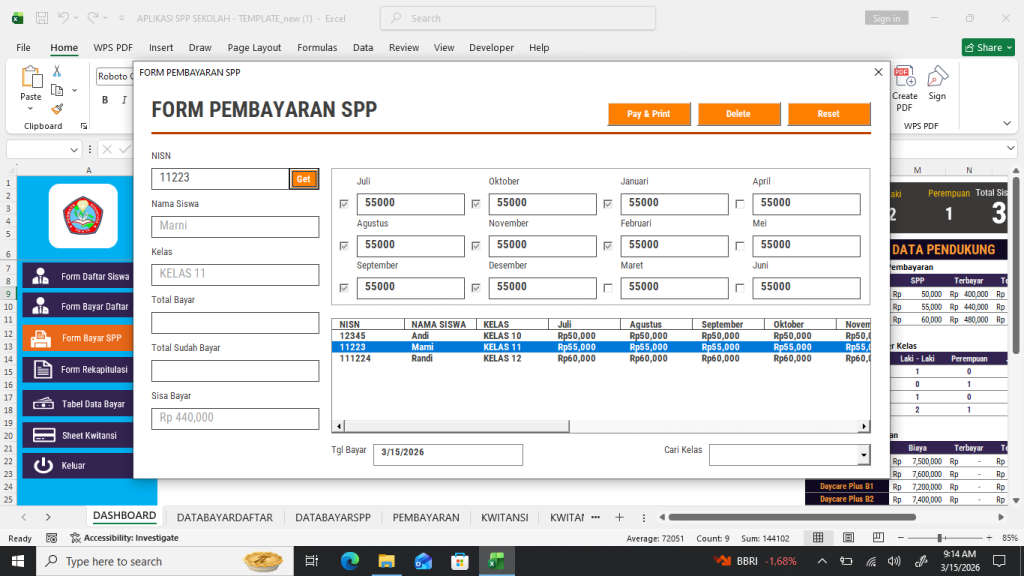Dengan menggunakan Aplikasi Pembayaran SPP dan Pendaftaran Sekolah Excel, sekolah tidak perlu lagi repot mengelola pembayaran secara manual.