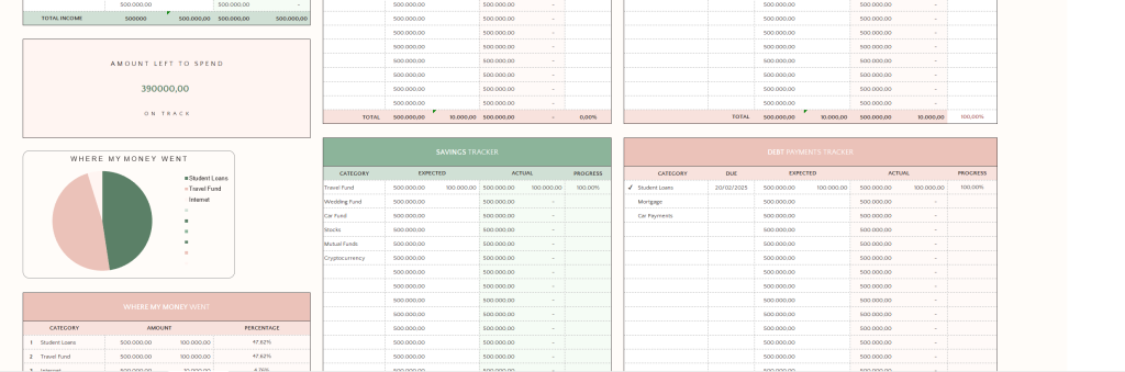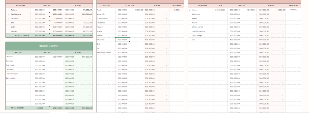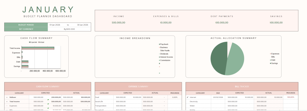 Dengan template ini, Anda bisa mencatat pemasukan dan pengeluaran secara teratur serta memantau kondisi keuangan dengan lebih jelas.